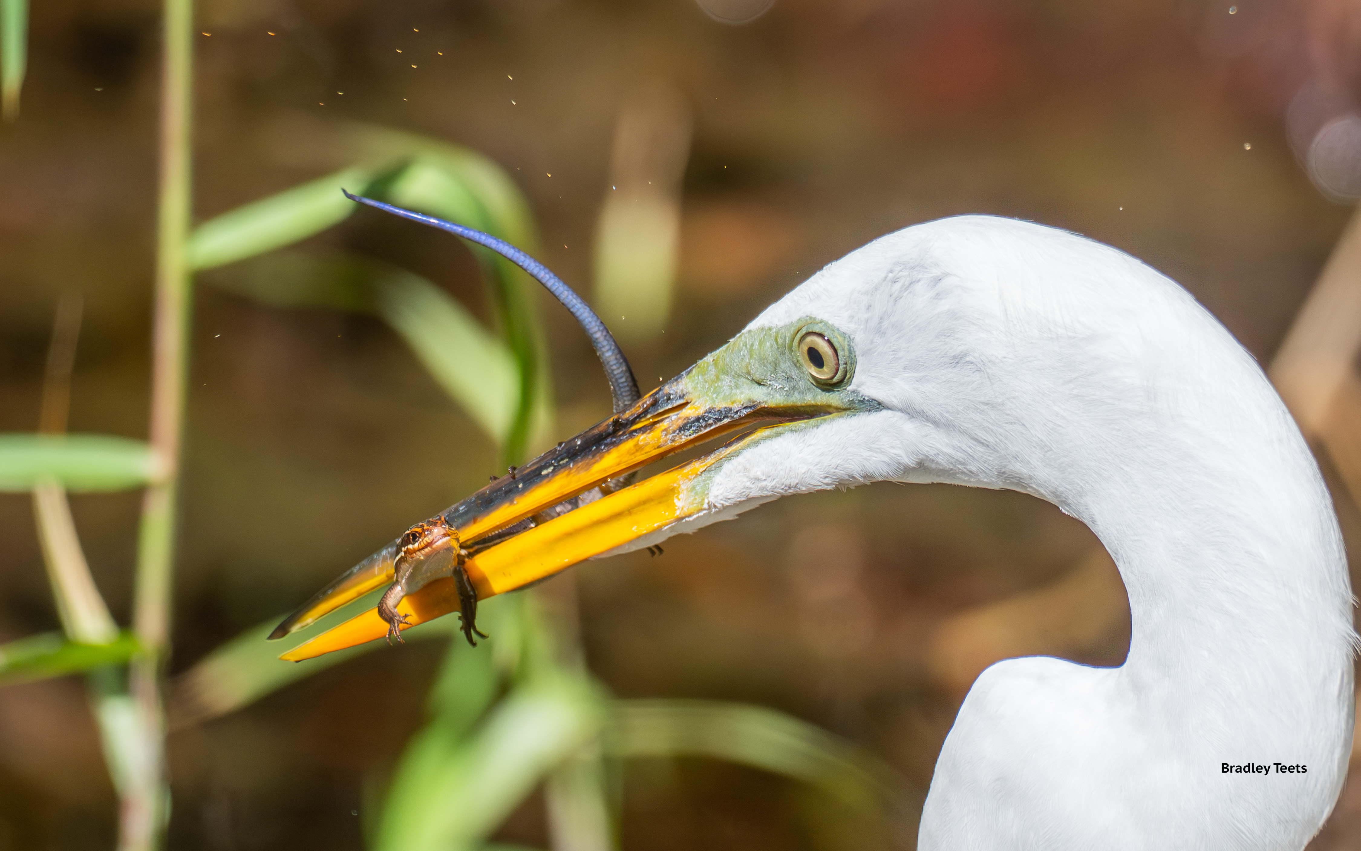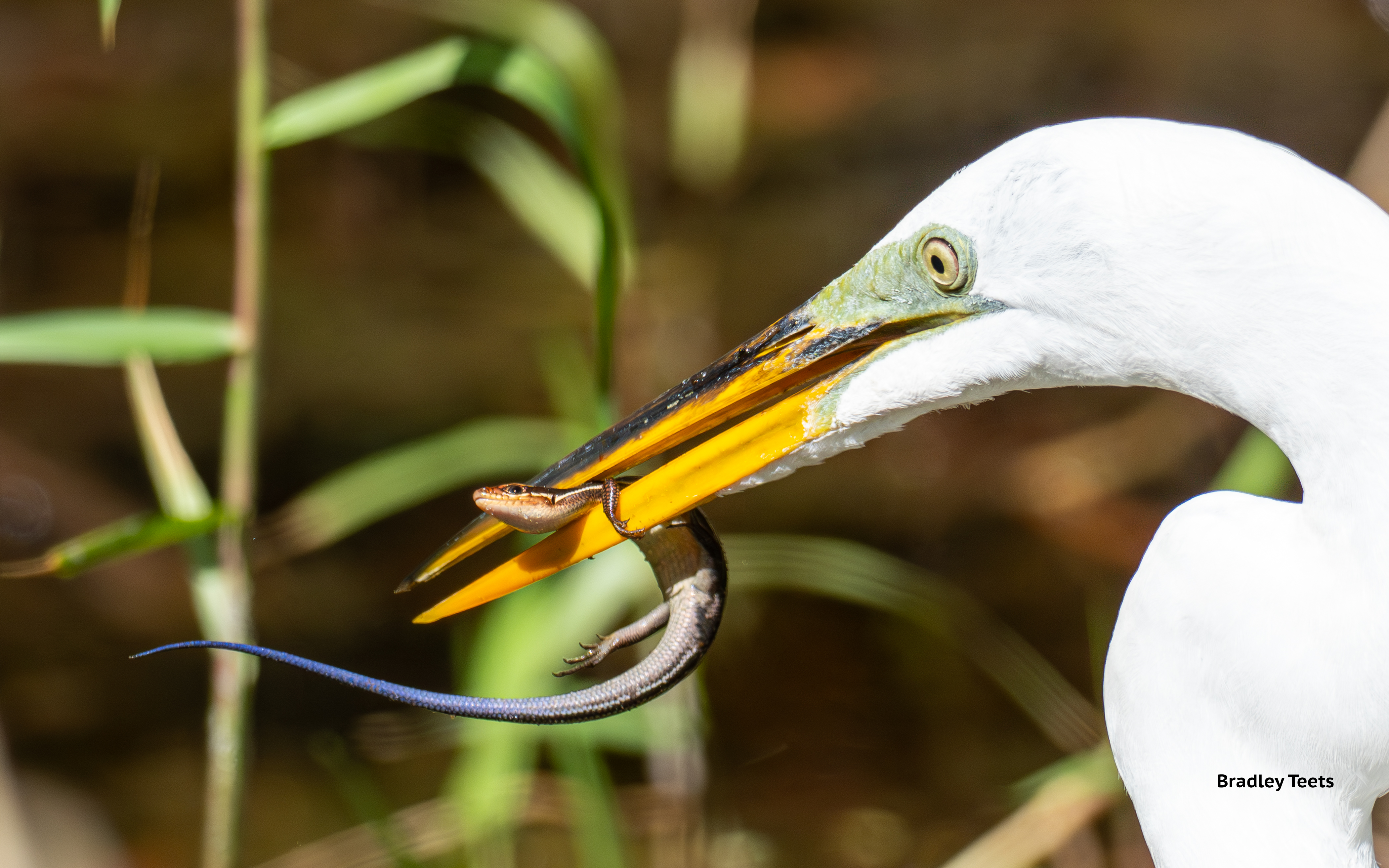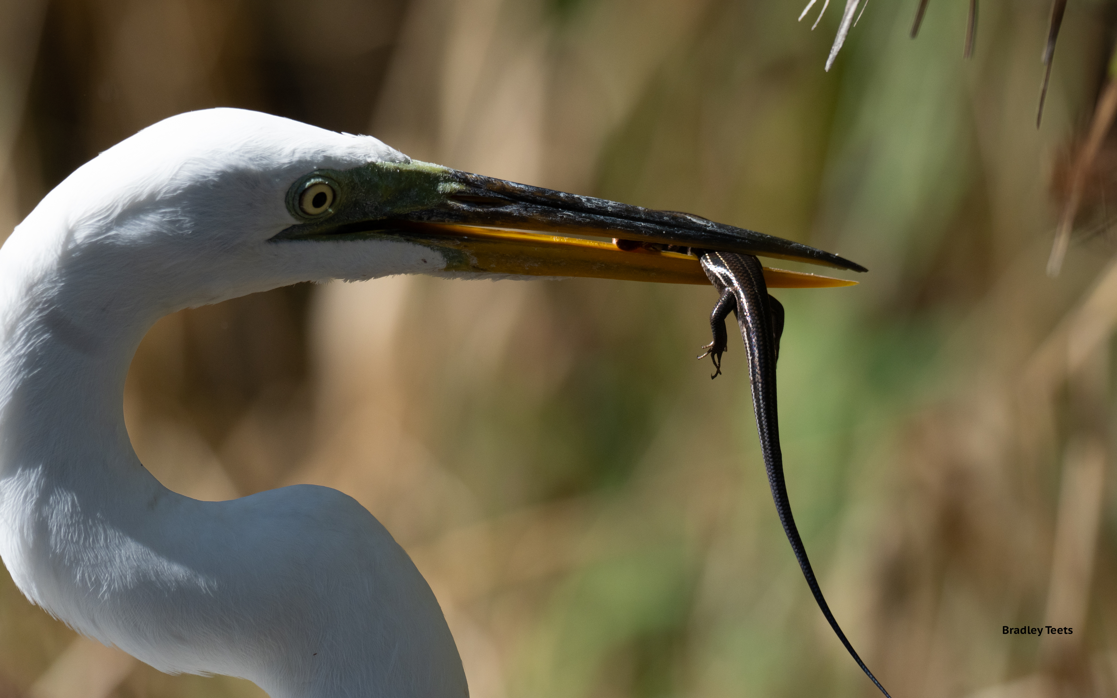 Great Egret with a lizard